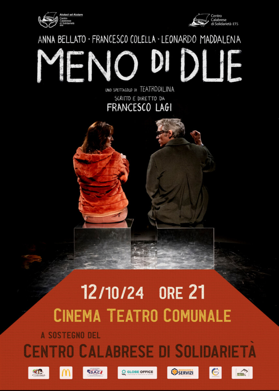 accade qualcosa di straordinario. Sabato 12 ottobre, alle ore 21, il Teatro Comunale di Catanzaro si illuminerà con "Meno di due", un'opera scritta e diretta da Francesco Lagi, con il nostro Francesco Colella, attore catanzarese di grande bravura e cuore, apprezzato anche in importanti produzioni internazionali.