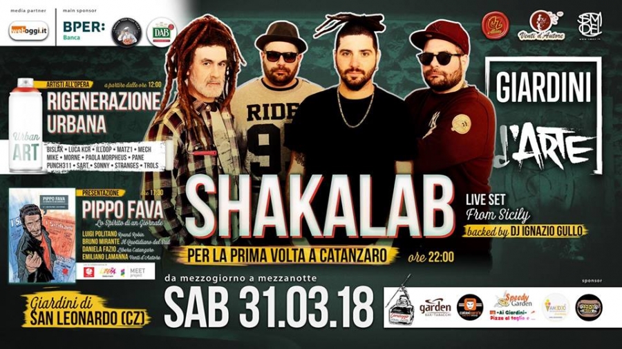 Dalle 22.00, per la prima volta a Catanzaro, il nuovo fenomeno reggae nazionale, dalla Sicilia arrivano gli Shakalab, il super collettivo del reggae siciliano formato dall'unione di quattro cantanti e un dj, da molto tempo attivi come solisti: Jahmento, Lorrè, Br1 e Marcolizzo accompagnati dal dj Ignazio Gullo. Un progetto ricco di contaminazioni sonore che esplora tutte le sfumature del reggae fino ad arrivare all'hip hop, con centinaia di live in giro per l'Italia a supporto anche di artisti internazionali come Shaggy, Ky-Mani Marley, Barrington Levy e molti altri.