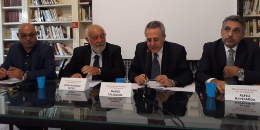 dalla Società Italiana di Intelligence e dalla Fondazione "Italia Domani", con la collaborazione della casa editrice Rubbettino, del Laboratorio sull'Intelligence dell'Università della Calabria e dell'Associazione "Fiore di Lino". La manifestazione è stata introdotta e coordinata dal Direttore dell'Università d'estate sull'Intelligence Mario Caligiuri, il quale ha ricordato che "l'intelligence è il tempo del futuro, rappresentando la forma più raffinata di intelligenza umana poiché consente di penetrare al di là delle apparenze". L'università d'estate sull'Intelligence si è svolta dal 5 al 7 settembre a Soveria Mannelli presso la Biblioteca "Michele Caligiuri", confermandosi un laboratorio di idee sulla funzione dell'intelligence. Infatti, tale strumento può essere considerato come un punto di incontro di più discipline e come metodo per interpretare le rapidissime trasformazioni della realtà. Alla presenza di studenti provenienti da tutta l'Italia, si sono alternati docenti con diverse competenze che hanno offerto molteplici spunti di riflessione. Il sottosegretario alla Difesa dal 2008 al 2011 Giuseppe Cossiga ha affrontato il tema "Difesa e interesse nazionale", evidenziando che l'industria della difesa contribuisce in modo rilevante al Prodotto Interno Lordo nazionale; che l'Italia è uno dei Paesi più presenti nelle missioni di pace all'estero; che l'Intelligence rafforza l'identità del Paese. Il consigliere strategico e docente universitario Massimo Franchi ha trattato la "Guerra economica e delle informazioni", mettendo in rilievo che l'intelligence dopo il crollo del muro di Berlino si è principalmente orientata sull'economia; che la guerra delle informazioni è sempre più incisiva e determina gli equilibri planetari; che il petrolio e i dati sono i principali obiettivi dei conflitti economici. Il Coordinatore dell'Osservatorio sulla sicurezza marittima del Laboratorio sull'Intelligence dell'Università della Calabria Andrea Sberze ha discusso di "Sicurezza marittima", rilevando che rappresenta un settore decisivo della sicurezza nazionale; che l'economia marittima è fondamentale per l'Italia; che le tecnologie sono sempre più strategiche nella portualità. L'ispettore superiore della Polizia di Stato ed esperto di strategie di controllo del territorio Elia Lombardo ha approfondito la "Polizia predittiva", sostenendo che oggi è fondamentale il passaggio culturale dal mero controllo per il pronto intervento alla prevenzione dei crimini; che il modello predittivo denominato XLAW si sta sperimentando in 12 città italiane con risultati apprezzabili; che lo sviluppo e l'impiego di tecnologie innovative favorisce indispensabili trasformazioni per migliorare la cultura della sicurezza. Il docente dell'Università di Roma "Tor Vergata" Bruno Gioffrè ha incentrato la sua lezione su "Previsione del paesaggio sonoro", affermando che questo ambito può offrire interessanti e inediti elementi di anticipazione dei fenomeni sociali; che è decisivo per l'intelligence avventurarsi in territori di confine; che è stata effettuata una ricerca all'Università della Calabria i cui risultati saranno presentati entro la fine dell'anno. Per il docente universitario e scrittore Antonio Selvatici la "Nuova via della seta" rappresenta la più complessa e significativa strategia economica e culturale del XXI secolo; che il sistema politico cinese è in grado di programmare a differenza delle democrazie che navigano a vista; che l'Intelligence nazionale dovrebbe individuare come priorità il controllo di questa politica. La giurista e scrittrice Solange Manfredi ha raccontato "70 anni di guerra psicologica in Italia", ricordando che la fabbrica delle emozioni condiziona la società contemporanea e che l'odio non esplode mai spontaneamente; che bisogna diffidare profondamente da chi propone ricette facili per problemi complessi e da chi attribuisce etichette morali; che l'intelligence è un elemento essenziale nella guerra psicologica che ha interessato e che sta interessando il nostro Paese. Il Ricercatore del Laboratorio sull'Intelligence dell'Università della Calabria ed esperto di diritto islamico Enzo Cotroneo si è soffermato su "Occidente e Islam: un confronto culturale", argomentando che la chiave culturale è fondamentale per comprendere questo fenomeno; che occorre conoscere e non demonizzare gli altri; che questo secolare confronto segnerà in modo marcato i prossimi anni. Il dottorando di ricerca dell'Università "La Sapienza" di Roma Gianluca Tirozzi ritiene che la "Human intelligence" costituisca un elemento sempre più decisivo nonostante le tecnologie; che la ricetta del merito e delle capacità individuali siano fondamentali per il nostro Paese; che dalla formazione dell'elemento umano dipenda il dominio dello scenario mondiale nei prossimi anni. Il tecnologo Gabriele Edmondo Pegoraro ha toccato il tema centrale di "Intelligence e intelligenza artificiale", ponendo in rilievo che l'intelligenza artificiale è già tra noi e ci osserva; che si sta realizzando una pericolosa integrazione tra reale e virtuale, non solo a livello individuale ma anche economico con la moneta complementare; che i malware nel nostro Paese creano danni economici superiori agli importi di tre finanziarie, poiché la sicurezza informatica assoluta è impossibile ma può essere mitigata dalla consapevolezza umana. Per il giornalista e imprenditore Stefano Piazza il "Fondamentalismo islamico in Italia e in Europa" costituisce un fenomeno che non si può assolutamente sottovalutare; che occorre consapevolezza politica e culturale per comprenderlo nel modo adeguato; che i numeri dei fondamentalisti sono dovunque preoccupanti. Il Senior Vice President Security di ENI Alfio Rapisarda ha sottolineato l'importanza dell' "Intelligence e sicurezza aziendale", ricordando che le grandi imprese rappresentano e tutelano l'interesse nazionale e la ragion di Stato; che la sicurezza è un settore occupazionale a