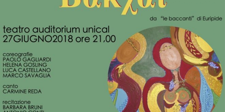 RENDE - Il 27 giugno 2018 alle ore 21,00 presso il teatro Auditorium Unical di Arcavacata (CS) il centro studi danza Dance Project metterà in scena lo spettacolo ΒἈΚΧΑΙ (liberamente tratto da Le Baccanti di Euripide). LE BACCANTI è la storia di Dioniso, dio dell’ebbrezza, del vino, della goliardia, nato dallo stupro di Zeus alla tebana Semele, morta nel darlo alla luce e considerato una divinità minore da suo cugino Penteo, re di Tebe, che lo esclude da preghiere e libagioni.