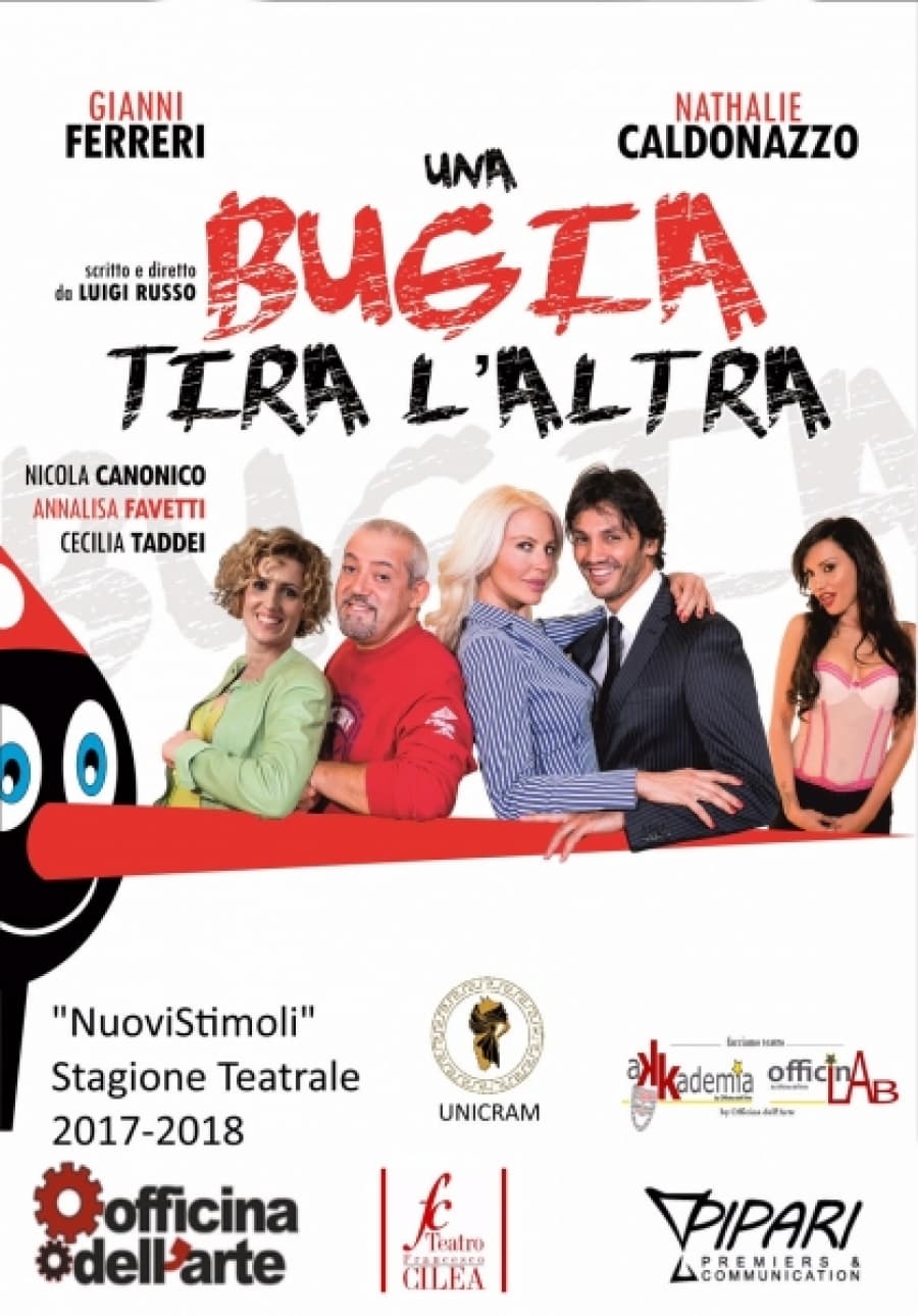 REGGIO CALABRIA - L'appuntamento è per sabato 10 Marzo presso il Teatro Francesco Cilea di Reggio Calabria con ''Una bugia tira l'altra'', spettacolo scritto e diretto da Luigi Russo con Gianni Ferreri, Nathalie Caldonazzo, Nicola Canonico, Annalisa Favetti e Cecilia Taddei.