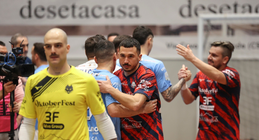 Lupi subito pericolosi dopo pochi secondi con Gabriel che costringe De Gennaro al salvataggio in corner. La scena si ripete al secondo minuto, con lo stesso esito. Numero di Cabeça al 3′ che salta secco Borruto e calcia sull’esterno della rete. Predominio rossoblù nella prima parte del match: è Marchio ad andare vicino al vantaggio in un paio di occasioni. Insidiosissimo anche il Napoli con De Luca che in scivolata colpisce il palo esterno. I lupi passano al 5′ con un bolide di Adornato che si insacca sotto la traversa e fa esplodere un PalaCosentia gremito. Gran giocata dei padroni di casa a metà primo tempo: lancio al millimetro di Del Ferraro per Cabeça che prova a scavalcare De Gennaro con un tocco di testa ma il portiere partenopeo con un colpo di reni devia in corner. Si fa vedere anche il Napoli al 15′ con Guilhermao che impegna Del Ferraro. Episodio dubbio al 17′: Cabeça si invola verso la porta e con un colpo di tacco beffa De Gennaro ma l’arbitro annulla. Si va al riposo con la Pirossigeno avanti di una rete.