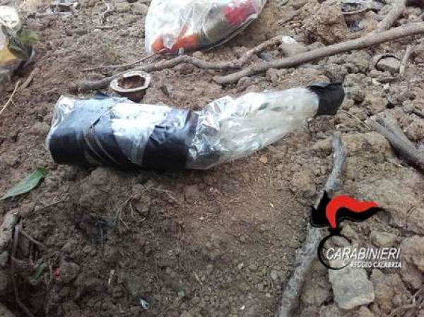I militari, nel corso di una perquisizione domiciliare in un casolare in disuso risultato nella disponibilità del pensionato, hanno trovato un involucro in cellophane contenente materiale esplodente confezionato con pallini in metallo e miccia esterna e le cartucce. Il materiale esplodente è stato posto in sicurezza dagli artificieri del Comando provinciale dei carabinieri di Reggio, fatto intervenire sul posto.