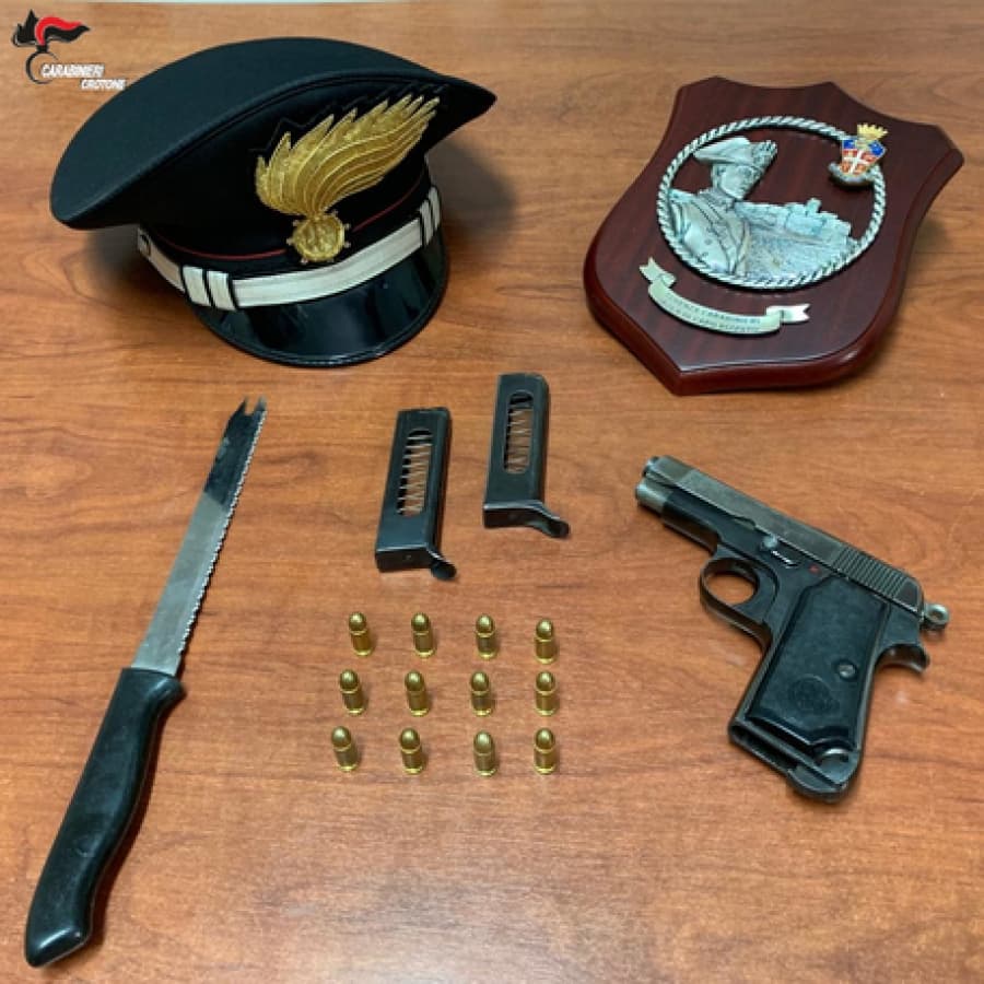 I militari, a seguito di una segnalazione, sono intervenuti per la lite scoppiata tra i due parenti ma hanno trovato solo il ventenne. Appresi i particolari dell'alterco, i carabinieri si sono messi subito sulle tracce del quarantasettenne che è stato trovato poco dopo. A seguito di una perquisizione personale che non ha dato esito, il controllo è stato allargato alla abitazione dell'uomo, dove è stato trovato un coltello. Poco dopo, notata ancora la sua presenza in giro, lo hanno sottoposto ad un nuovo controllo trovandolo in possesso, sotto la cintola dei pantaloni, di una pistola completa di due caricatori. A questo punto, scattato l'arresto, i militari hanno eseguito un ulteriore controllo nell'abitazione dell'uomo trovando in un intercapedine un fucile clandestino, 34 cartucce e un chilo circa di marijuana.