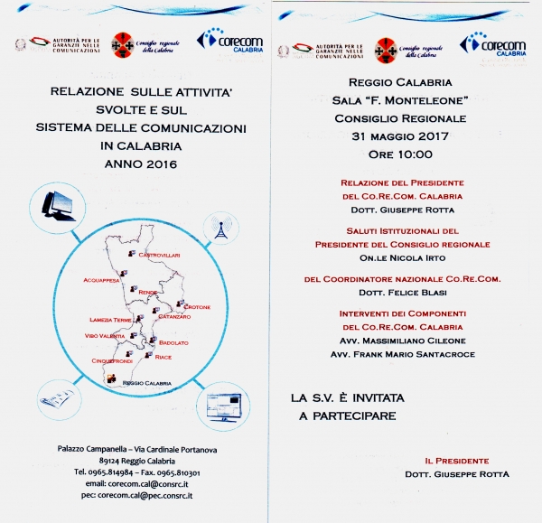 31 maggio 2017 e comunicato conferenza annuale sulle attività del Corecom anno 2016