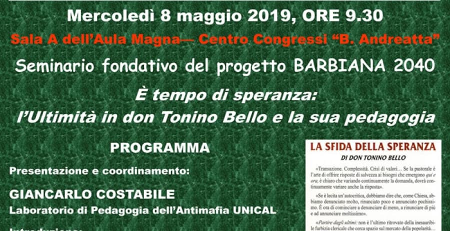 COSENZA - Si terrà mercoledì 8 maggio alle ore 9.30 presso la Sala A dell’Aula Magna dell’Università della Calabria, il seminario fondativo del progetto Barbiana 2040,