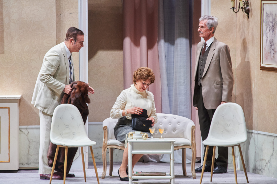 Nella scenografia che accoglie tre ambienti, Massimo Ghini si cala perfettamente nel ruolo di Alberto Nardi, che nel film fu di Alberto Sordi. E' credibile nel suo modo di interpretare un cinico imbecille, un uomo fallito che, nel tentativo di emulare la moglie, ne diventa il parassita, dimostrando di non sapersi allontanare dalla sua immagine di imprenditore improvvisato ed arraffone. L'attore romano, con il suo personaggio, attira l'attenzione del pubblico per la sua centralità, pur se nel corso dello spettacolo esalta l'aspetto negativo che il copione gli assegna.