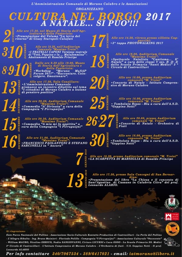 Il primo. Al MuSAP, dalle 9.30 alle 19.00, full immersion nella cultura contadina; una Tregiorni di grande spessore, con al centro il “Forum 2017 - Workshop Morano MuSAP 2017”, per raccontare il territorio, coinvolgere, emozionare e fare memoria delle radici popolari, alla luce dell’ampia repertazione custodita nei padiglioni espositivi fondati dal compianto prof. Francesco Mainieri.