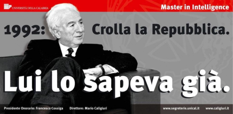 Intelligence: aperte le iscrizioni al Master dell'Università della Calabria, promosso nel 2007 con Francesco Cossiga