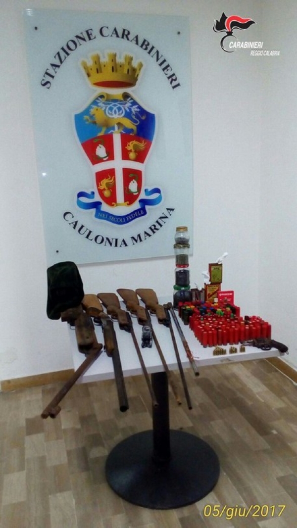 Durante una perquisizione domiciliare i militari hanno trovato la polvere da sparo all'interno di un deposito di mezzi agricoli in un terreno di sua proprietà delimitato da una recinzione. La perquisizione, estesa ai terreni limitrofi, ha portato a scoprire, in un canale di acqua sotto una roccia in area demaniale, un frigorifero con all'interno un fucile clandestino, tre carabine ad aria compressa modificate, una rivoltella clandestina, un castello di fucile, una canna per carabina, oltre 200 munizioni di vario calibro e altri 600 grammi di polvere da sparo.