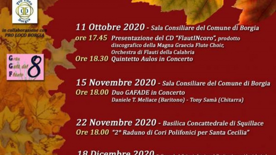 L'evento fa parte del festival "Armonie D'Autunno" organizzato dall'associazione a cui fa capo l'orchestra di flauti con il patrocinio dell'amministrazione comunale di Borgia, sempre attenta e disponibile a valorizzare le realtà culturali locali.