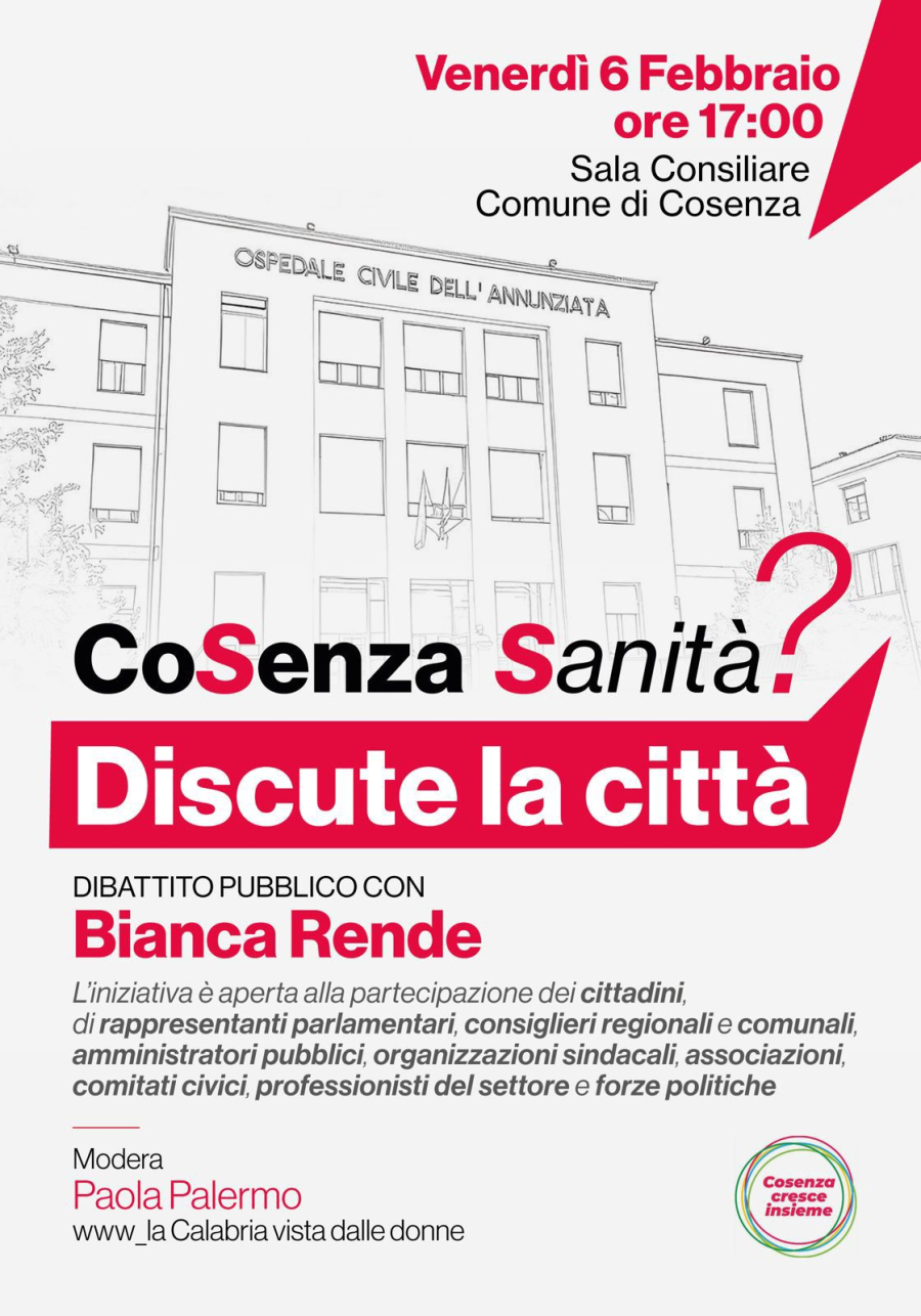 «Cosenza rischia di rimanere senza presidi sanitari pubblici lasciando solo strutture private che stanno riorganizzando la loro logistica» – dichiara la consigliera comunale Bianca Rende. «Nel corso del Consiglio comunale aperto della Città – continua – si è preso atto di una verità chiara: Cosenza può e deve ospitare un presidio ospedaliero di primo livello. Per questo motivo, il 6 febbraio, proprio nel Comune di Cosenza, discuteremo delle prospettive e delle azioni collettive da mettere in campo per salvaguardare il diritto alla salute dei cosentini, coinvolgendoli».