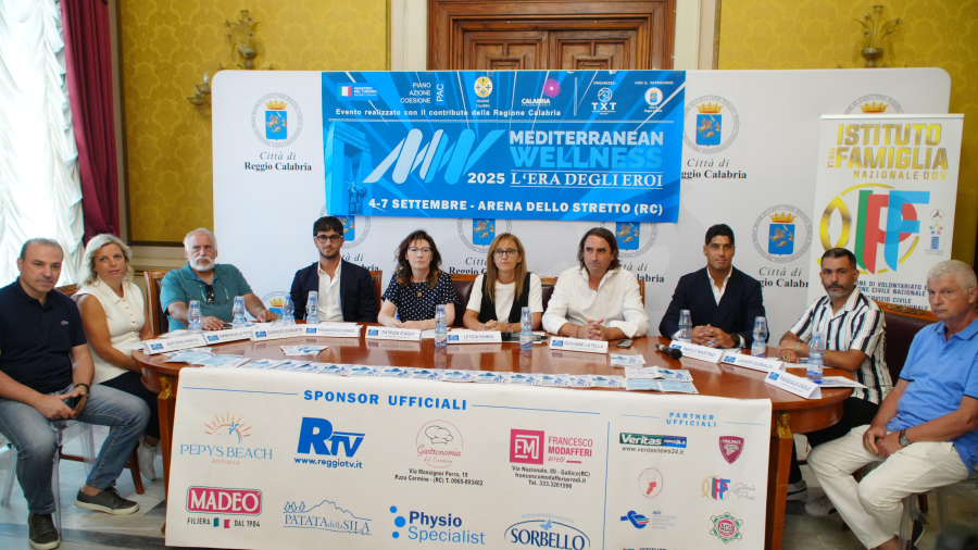 la conferenza stampa di presentazione della XIII edizione della Mediterranean Wellness – L'Era degli Eroi, evento simbolo dell'estate reggina che dal 4 al 7 settembre animerà l'Arena dello Stretto "Ciccio Franco".