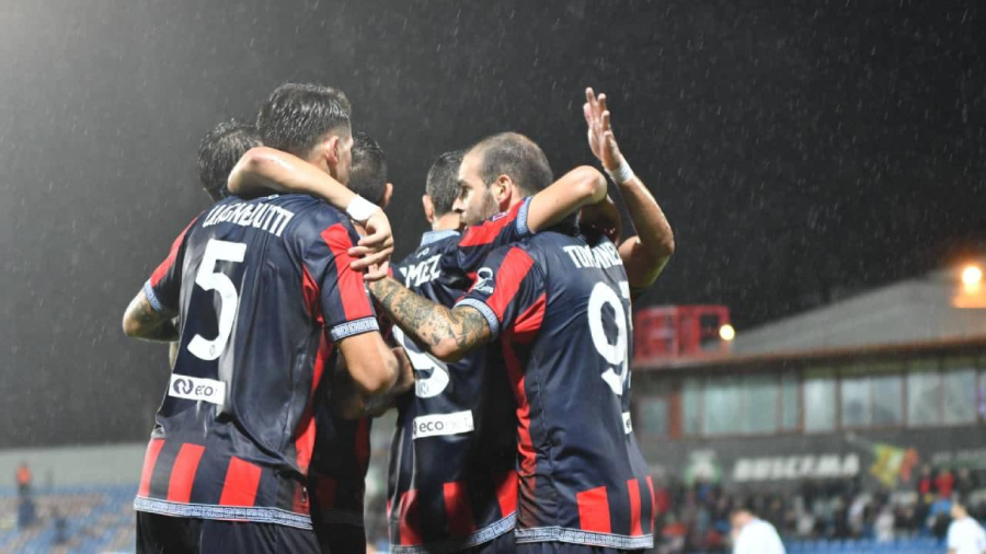 Dopo tanta sofferenza, e dimostrando ancora più di una difficoltà, i rossoblù sconfiggono il Taranto nell’ultimo turno del campionato di Lega Pro al termine di una partita al solito in salita: i pugliesi, ultimi in classifica, hanno provato a fare lo sgambetto ai pitagorici, passando persino in vantaggio nel primo tempo (gol di Shiba in sospetto fuorigioco) ma poi si sono dovuti arrendere alla pressione della squadra di Longo che è riuscita prima a pareggiare con Silva, poi a ribaltare la situazione con Tumminello.
